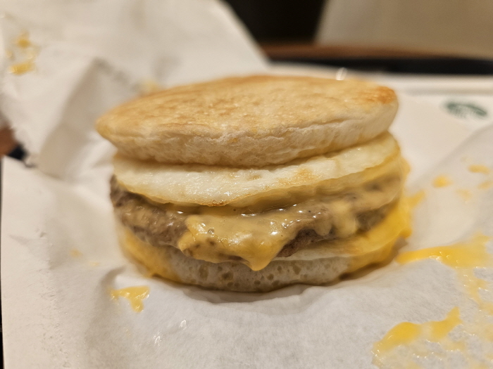 스타벅스 더블 에그 브렉퍼스트 & 체다 샌드위치
