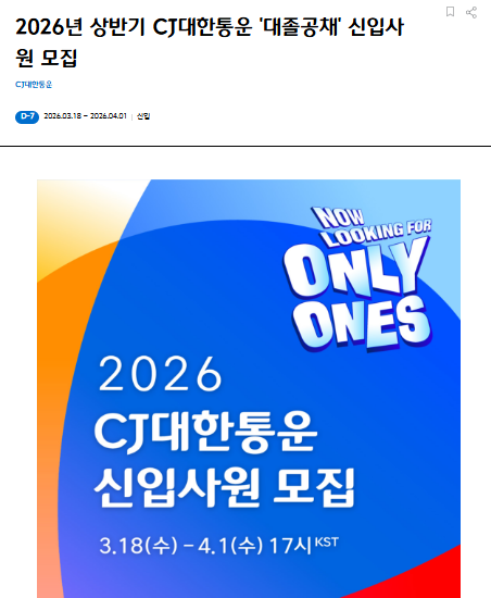 2026년 상반기 CJ대한통운 '대졸공채' 신입사원 모집
